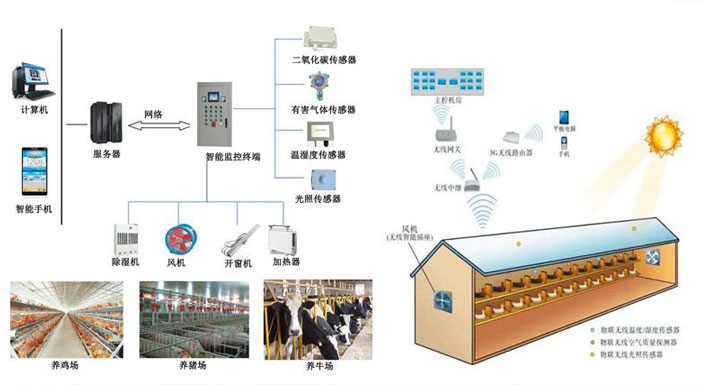 利用先進(jin)(jin)的(de)(de)物(wu)聯網技(ji)術,通過各種傳感(gan)器無線、實(shi)時采(cai)集(ji)養(yang)殖動物(wu)和舍內(nei)環境參數,并根據采(cai)集(ji)數據進(jin)(jin)行(xing)信息決策,遠程(cheng)智能控制相應設備,使養(yang)殖動物(wu)和舍內(nei)環境始終處(chu)于最(zui)佳狀態,在科學養(yang)殖、安全作業的(de)(de)同時,實(shi)現資源節(jie)約、降支(zhi)增(zeng)收的(de)(de)效果。